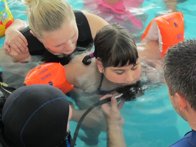 Three Students of the second grade of the Gymnasium of Slovenske Konjice, Peter Trdin, Masa Mesicek and Julija Hohler were also included in the activities. Some of their impressions: On Thursday we tried to submerge in Lasko and enjoyed a lot of fun with the pupils, have learned a lot about diving and dealing with children with disabilities. Children were very kind and, regardless that we met them for the first time, we became friends. We also learned to dive and, together with others, received diplomas for our discovery dive. Participating children can be a role model to many, as they have proven that despite their movement impairment they can achieve a lot. We definitely want to repeat the event, and we can hardly wait for the next meeting with the children.